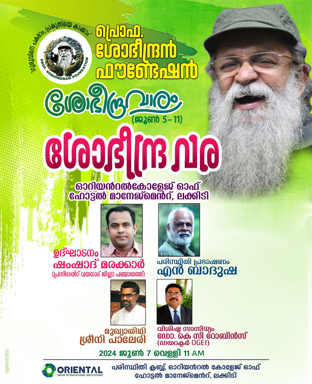 This program was conducted on the fourth day of the Sobhindra Week, on 7th June 2024. It's an event on which pupils and teachers drew pictures of the greenery on a canvas. It's conducted at the Oriental School of Hotel Management Lakkidi, Wayanad. It's the place where the Rain Walk started every year, under the leadership of Prof. Sobhindran.